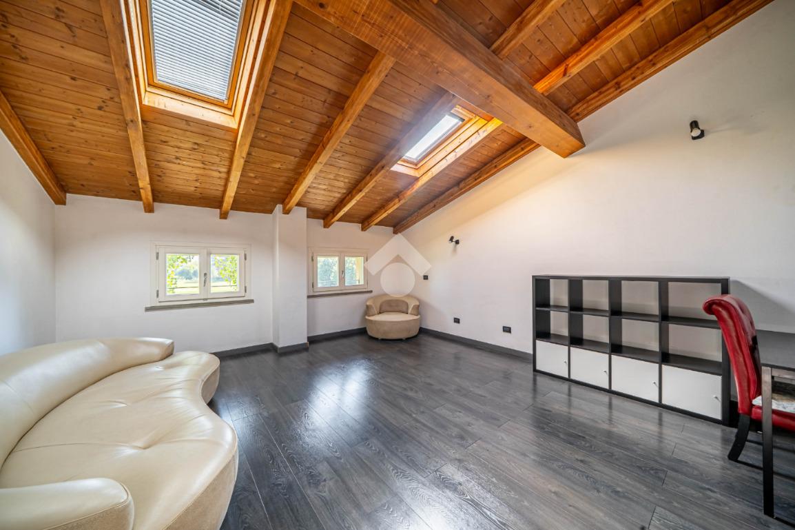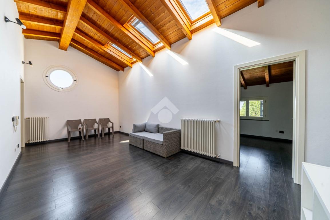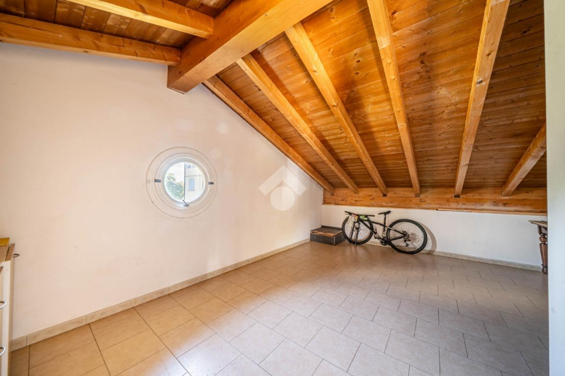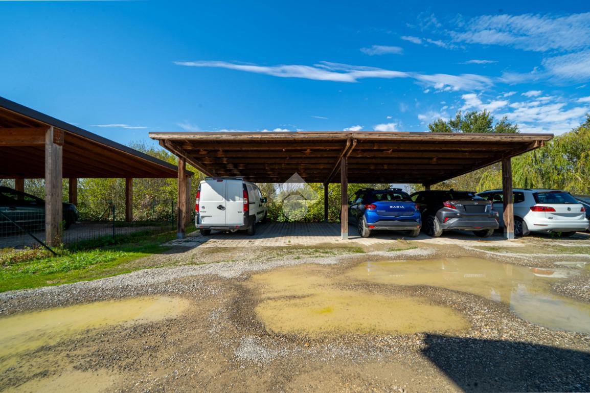 Completano la proprietà una mansarda e un'ampia area parcheggio con otto posti auto, garantendo così comodità e praticità.