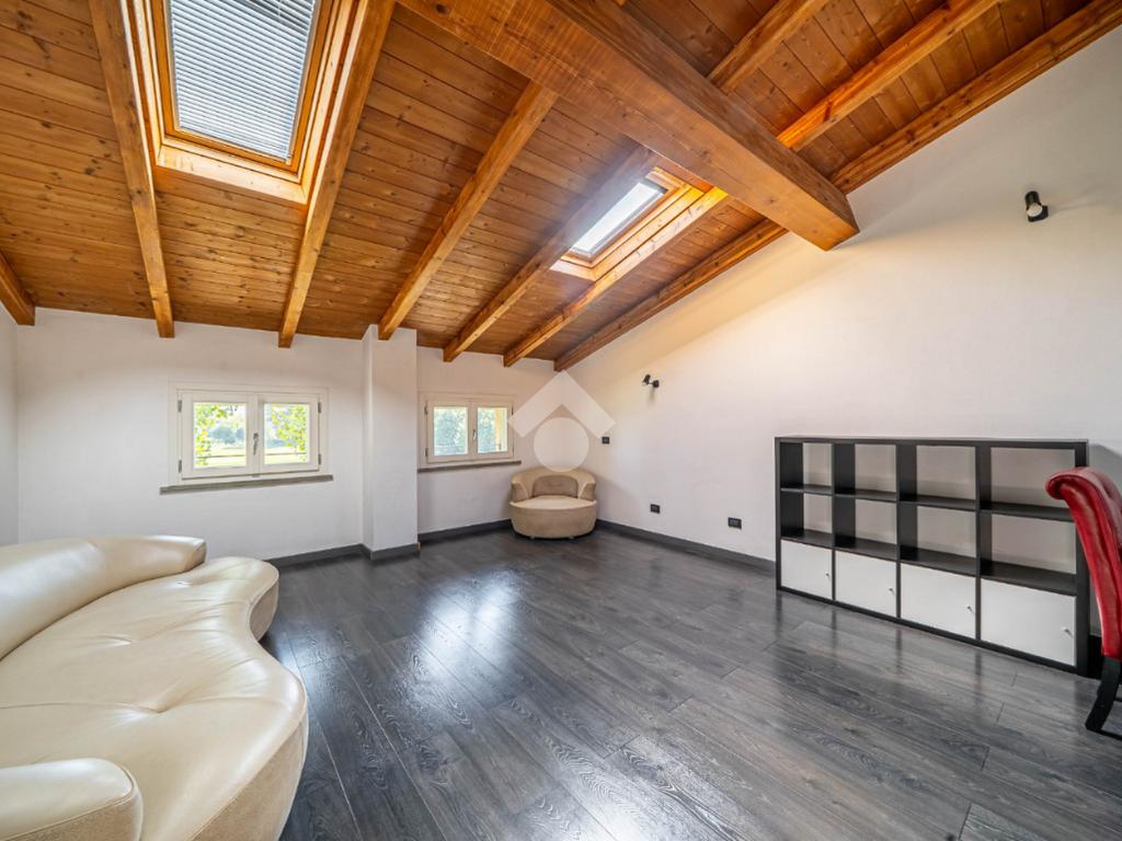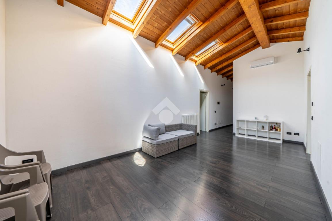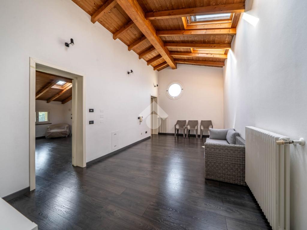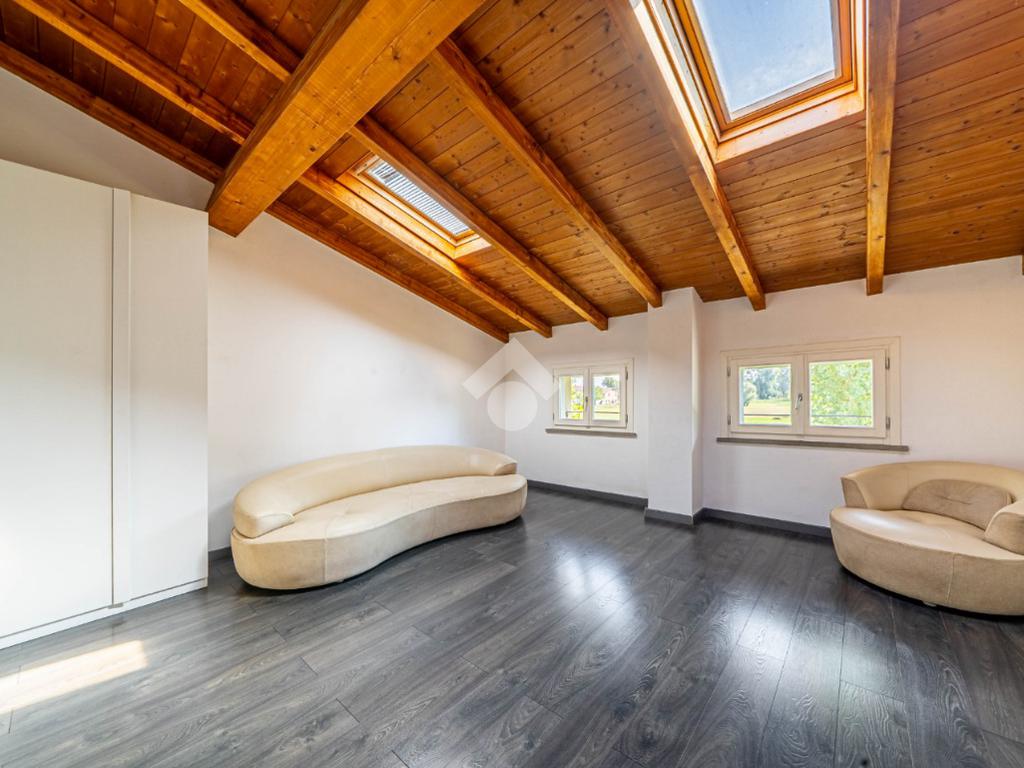Completano la proprietà una mansarda e un'ampia area parcheggio con otto posti auto, garantendo così comodità e praticità.