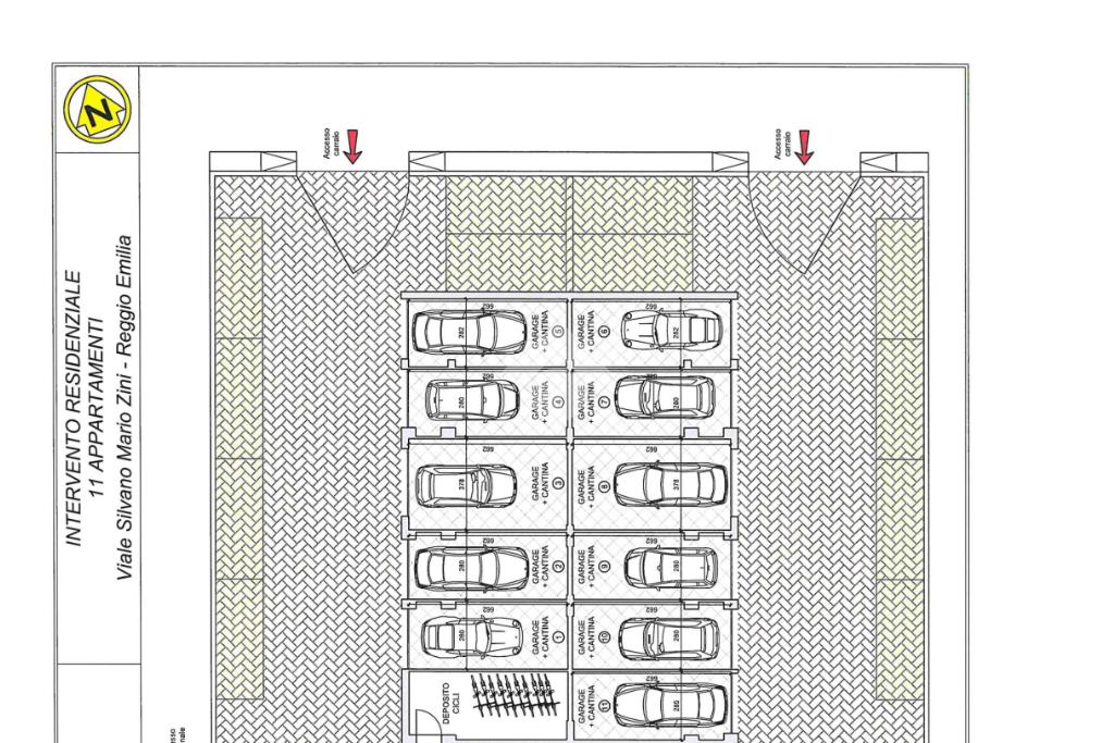 Al piano terra sono inoltre localizzate le autorimesse, disponibili al costo supplementare di 25000 euro, le cantine, spazi comuni come locali di deposito; sono inoltre disponibili i posti auto scoperti al costo di 9000 euro cadauno.