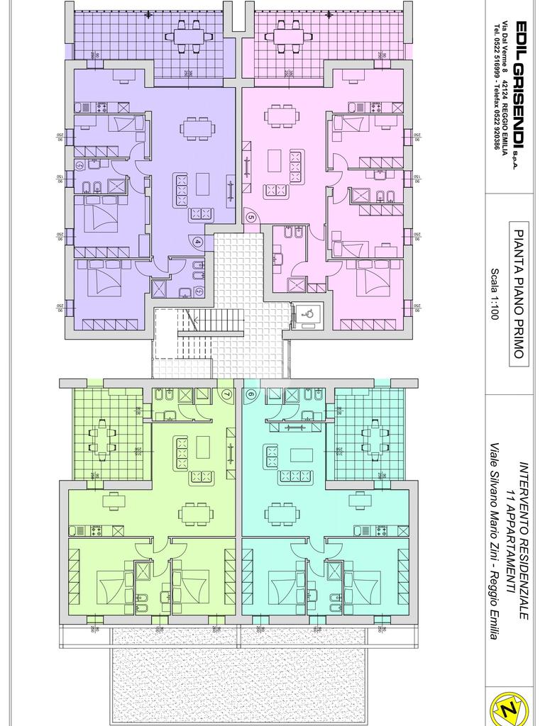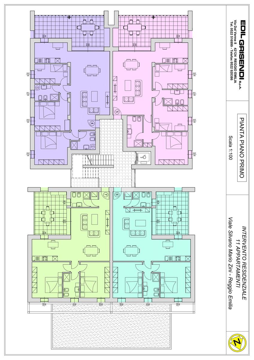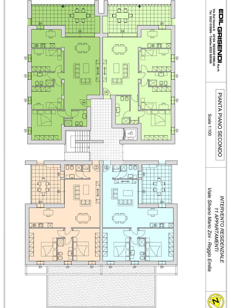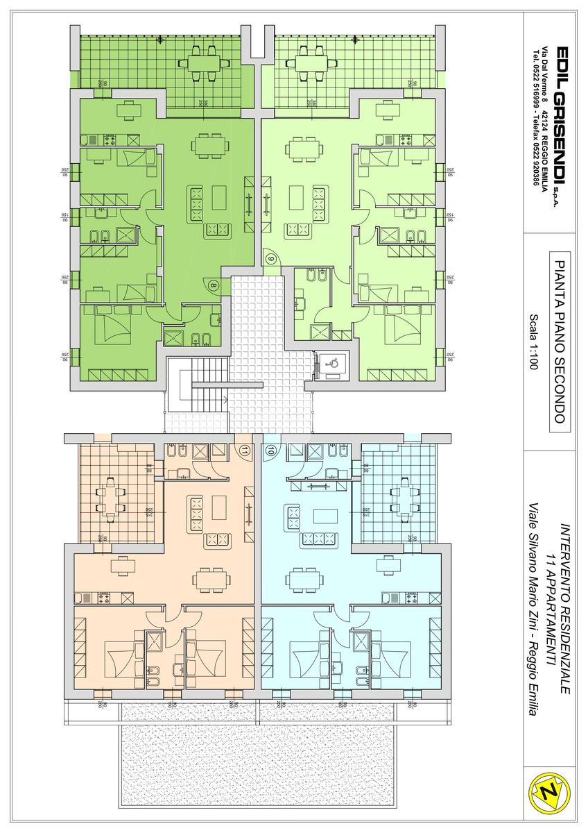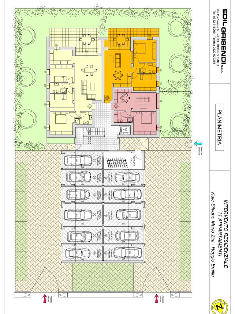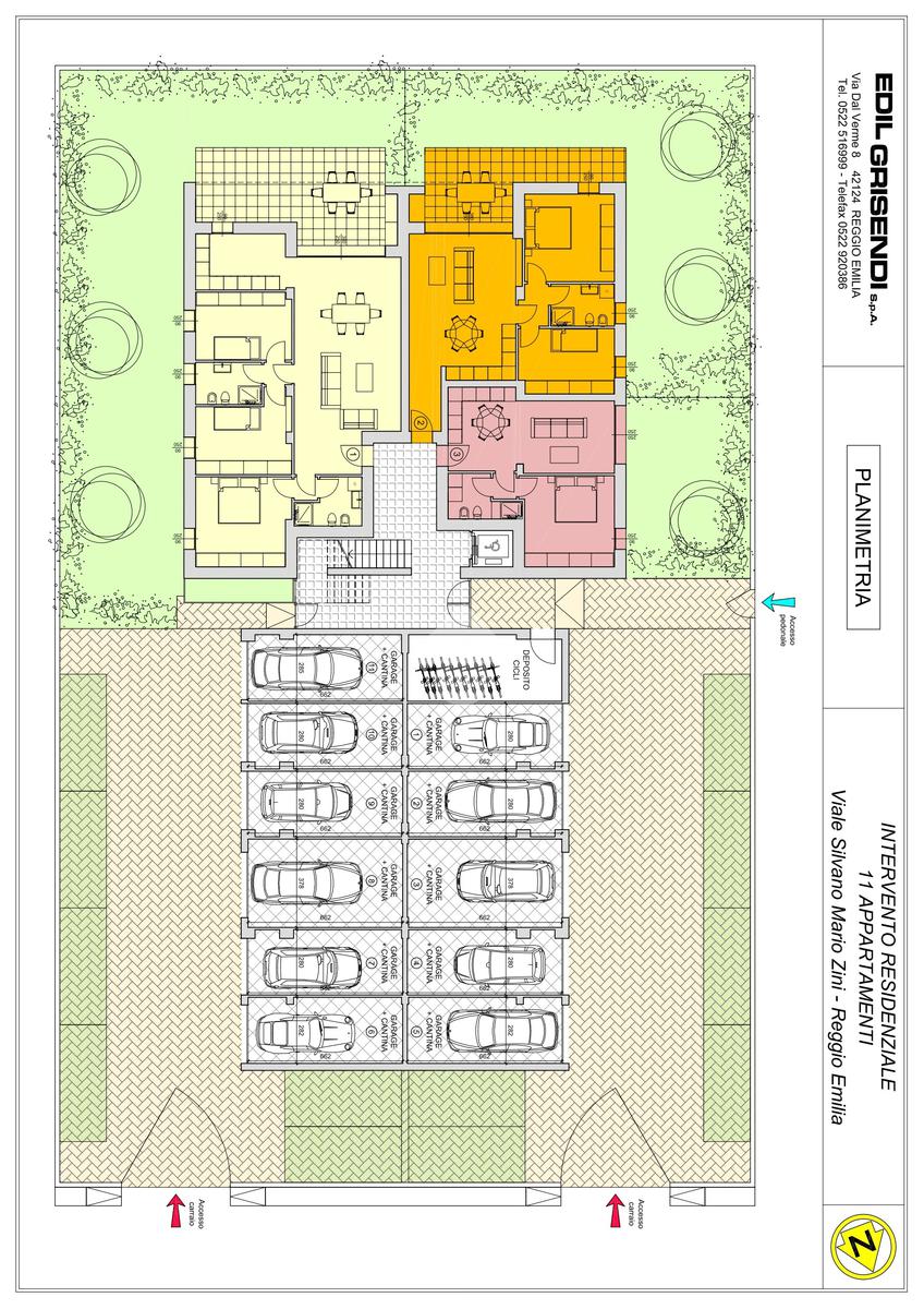 L'intervento prevede la realizzazione di n.11 appartamenti, rispettivamente tre al piano terra con giardino, quattro al primo e quattro al secondo piano, dotati di ampio terrazzo;