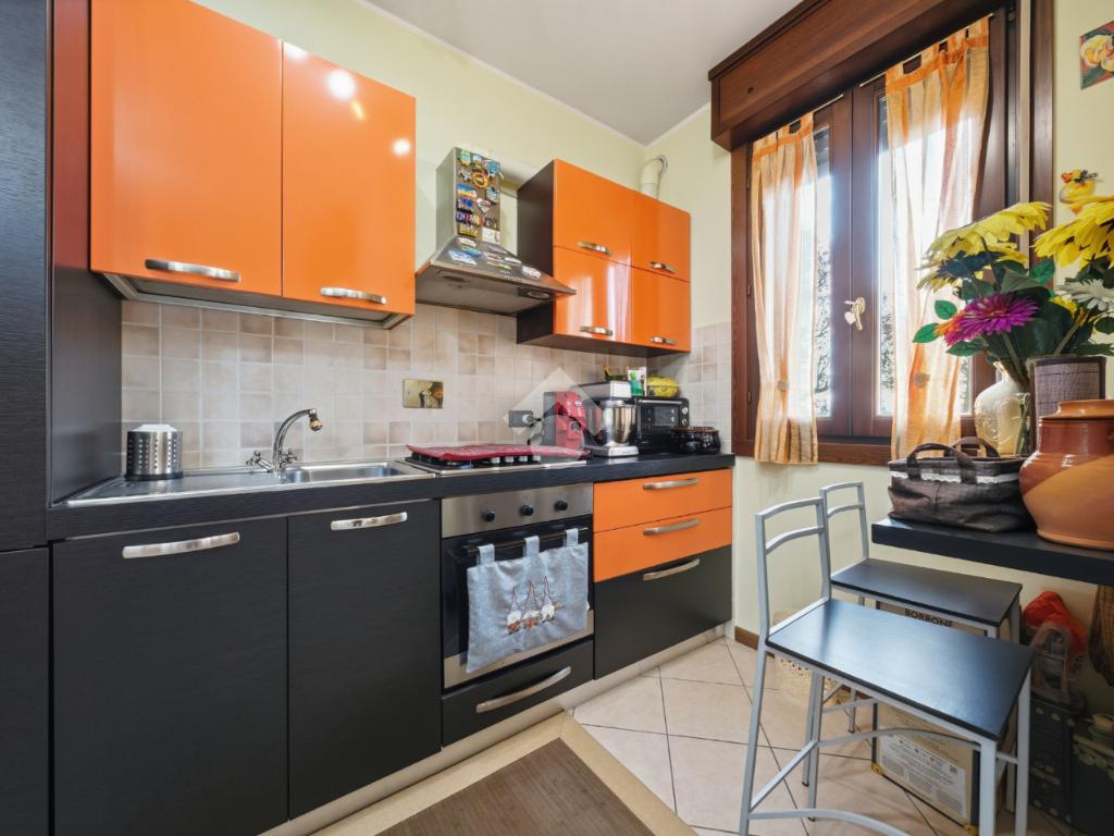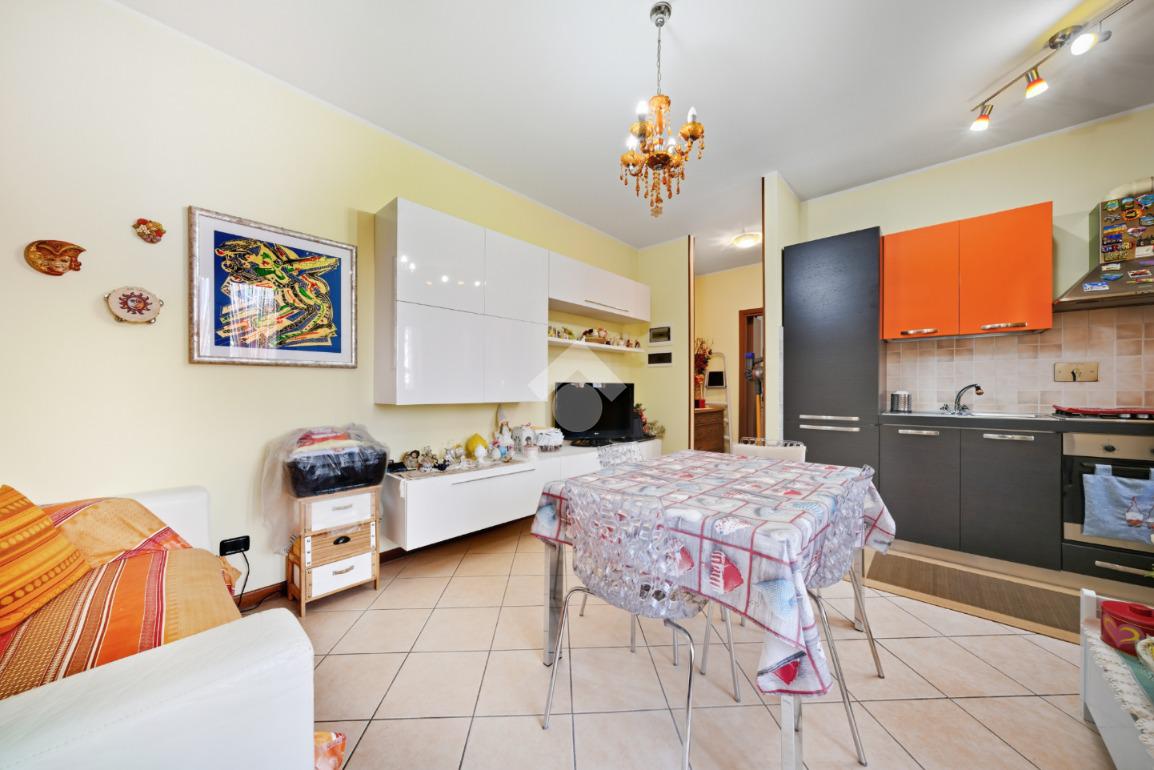 L'immobile offre un'accogliente zona giorno, con accesso diretto al terrazzo, e cucina a vista.